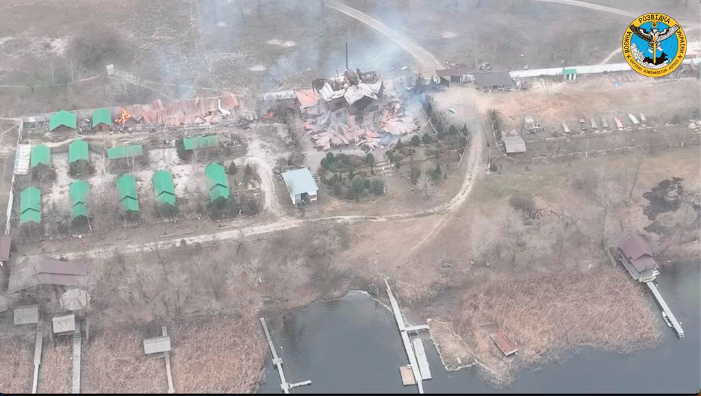 Передовой отряд из спецназа разведки высадился на берег и сжёг какой-то сарай на лодочной станции, который назвал штабом. Очевидно, что никакого командного пункта тут быть не могло, потому что здание находится под носом у врага, сидящего через реку.