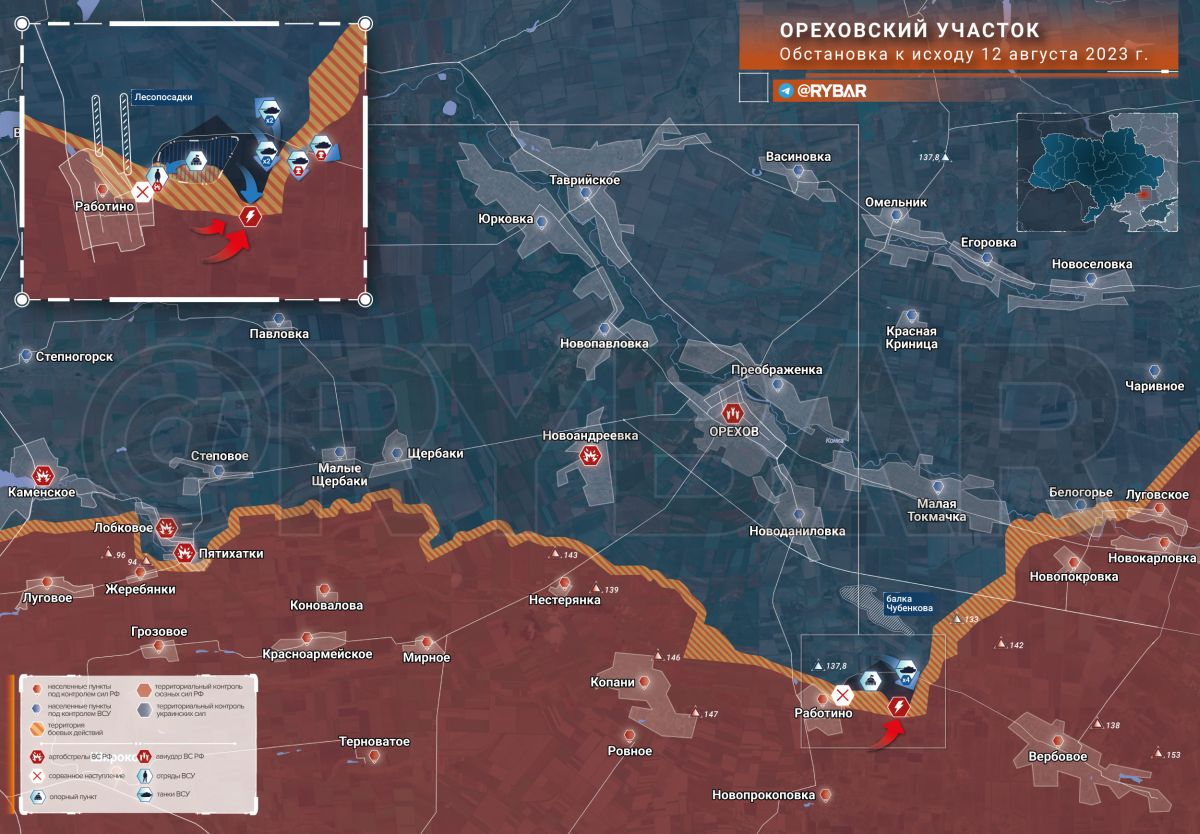Ореховский участок, обстановка к исходу 12 августа 2023 года от Телеграм-канала Рыбарь:
