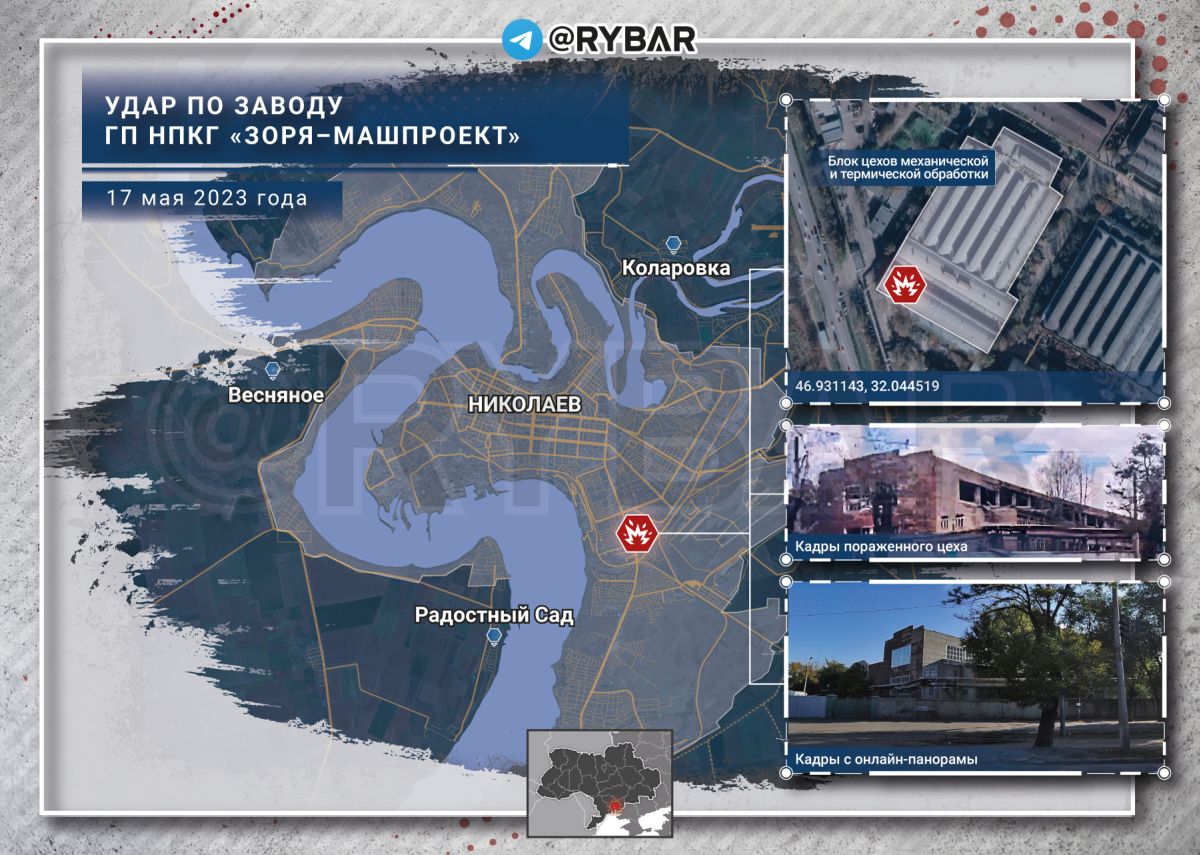 Украинская сторона привычно сообщила о поражении всех ракет силами ПВО, однако реальность оказалась несколько иной. Команде Рыбаря удалось подтвердить поражение Блока цехов механической и термической обработки завода.