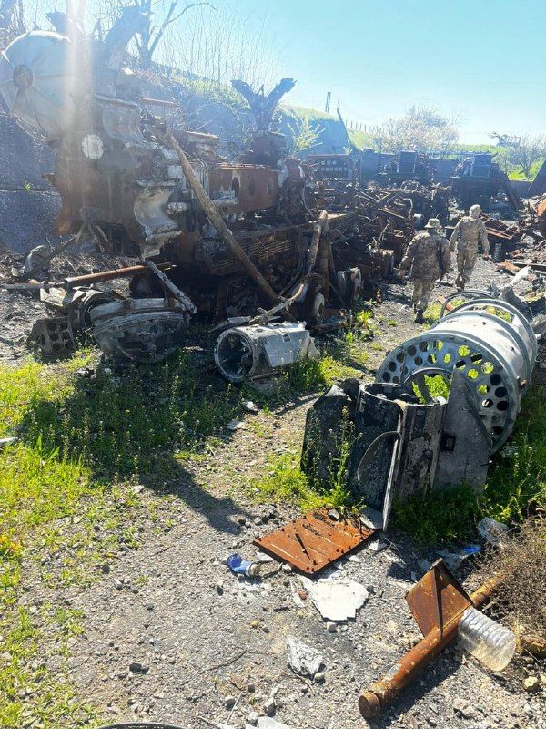 Уничтоженные украинские пусковые установки 5П85С вместе с запасом ракет и командный пункт 5Н63С из состава ЗРК С-300ПС в Херсонской области.