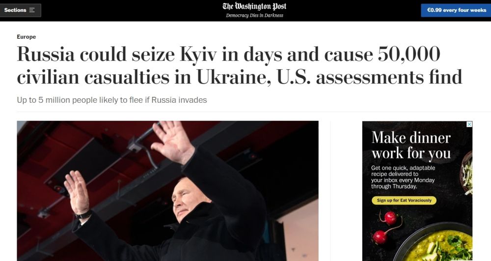 В редакции Washington Post, надо отметить, невысокого мнения о боеспособности ВСУ – несмотря на поставки военной помощи продержаться после начала «вторжения» украинская армия сможет 48 часов, то есть двое суток, не больше.