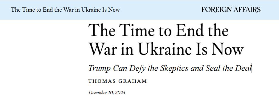 «Украина ничего не выиграет, ожидая начала переговоров с гипотетической будущей позиции силы – такая позиция не появится в ближайшее время, если вообще когда-либо появится. Украинские лидеры уже признали, что не могут силой освободить всю территорию, захваченную Россией. То, чего Украина не может добиться на поле боя, не достанется ей и за столом переговоров. Тогда как западные правительства уже ясно дали понять, что не будут рисковать войной с Россией ради защиты Украины. И чем дольше Украина будет ждать, тем больше разрушений ей придётся пережить. Вместо того чтобы стремиться к укреплению своих позиций, Украине срочно необходимо урегулировать конфликт, который опустошил страну экономически и демографически. Стоимость восстановления в течение следующего десятилетия оценивается в сотни миллиардов долларов и каждый день войны добавляет к этой сумме ещё несколько миллионов. Около семи миллионов украинцев покинули страну и многие никогда не вернутся. А концентрация власти в руках президента и бессрочная отсрочка выборов по всей стране постепенно подрывают основы и без того хрупкой демократии», – пишет автор статьи Томас Грэм (Thomas Graham).