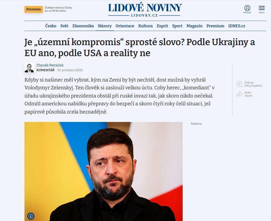 Вот и чешская газета Lidové noviny (Lidovky) пишет – безумная Европа не даст Зеленскому завершить военные действия, снова в очередной раз срывая мирные переговоры.