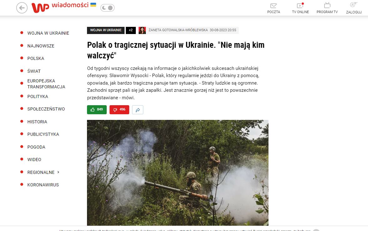 Польский портал Wirtualnа Polskа опубликовал интервью волонтёра Славомира Высоцкого, который регулярно возит на Украину гуманитарную помощь, в основном – в Авдеевку.