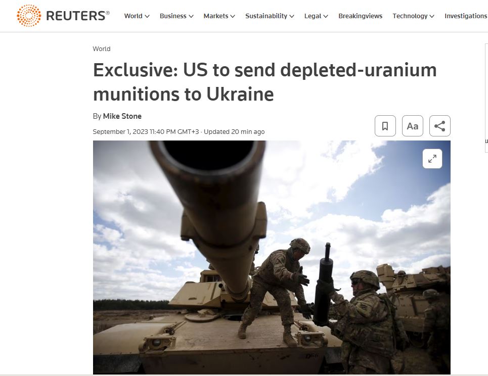 «Хотя Великобритания уже отправляла боеприпасы с обеднённым ураном на Украину, первая партия таких боеприпасов из США вызовет дебаты. Однако в настоящее время нет других способов помочь Киеву переломить ситуацию на фронте», – пишет Reuters, уверяя далее, что обеднённый уран совершенно безопасен и для военных, и для гражданского населения.