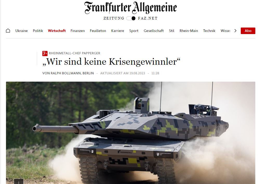 «Запад оказался не готов к боевым действиям с использованием традиционного вооружения. Там считали, что исход сражений на Украине можно будет предопределить с помощью систем электронного подавления, кибератак и высокоточных ударов с воздуха. К тому же военные аналитики в США и Европе были уверены, что ядерная держава вообще не способна вести боевые действия с использованием традиционного вооружения. Но всё это оказалось неверным», – заявил в интервью немецкой газете Frankfurter Allgemeine Zeitung (FAZ) глава оборонного концерна Германии Rheinmetall Армин Паппергер.