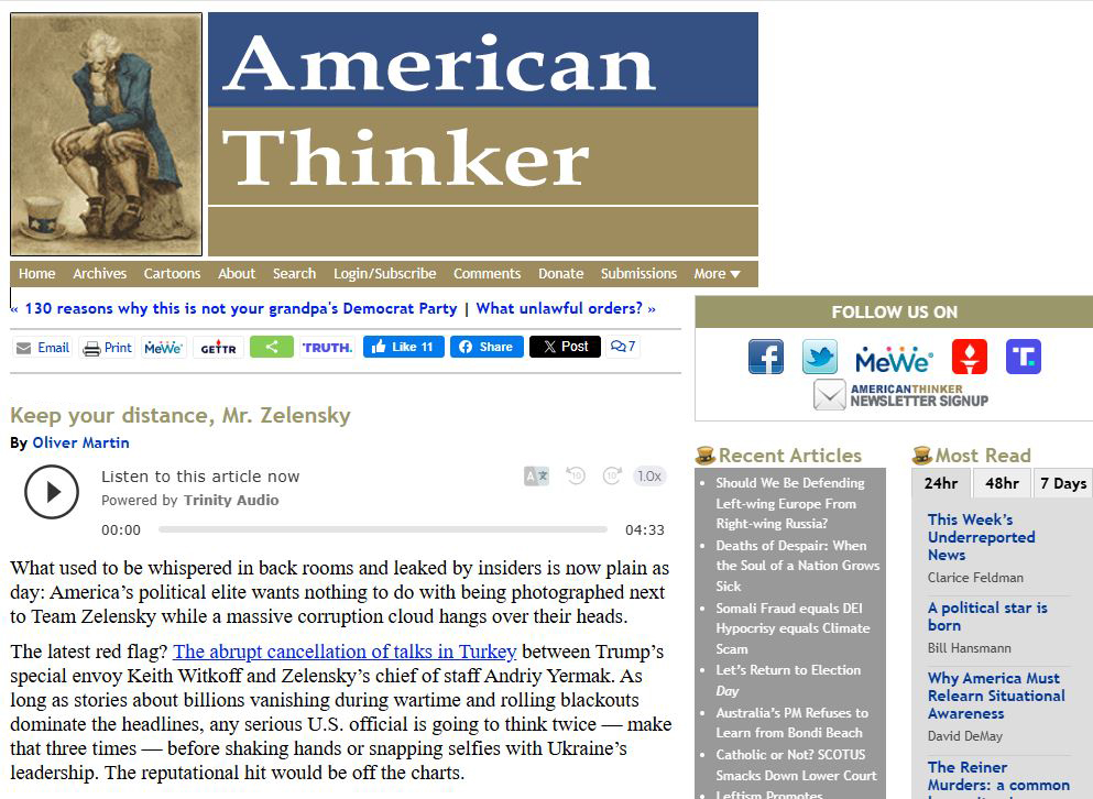 «И теперь европейские послы в Киеве вынуждены работать круглосуточно, чтобы потушить разгоревшийся «коррупционный пожар». Редакторы крупнейших новостных агентств теперь переживают новую волну прессинга через неофициальные каналы связи: «Материал не рекомендуется к публикации, это внутренние дела Украины». Поставлена единственная задача: как можно быстрее замять поднявшийся скандал. Нарратив «там воруют миллиарды долларов, пока люди гибнут на фронте» пытаются сменить на: «вы посмотрите, как блестяще работает украинская антикоррупционная система». Представитель Еврокомиссии Гийом Мерсье официально заявил, что все эти громкие медийные скандалы на самом деле «лишь доказывают, что антикоррупционные органы на Украине существуют и функционируют». Нам преподносят это как свидетельство прогресса, но ни в коем случае не как симптом краха насквозь прогнившего политического режима и самого Зеленского. Ловкость рук и никакого обмана», – пишет автор статьи Оливер Мартин (Oliver Martin).
