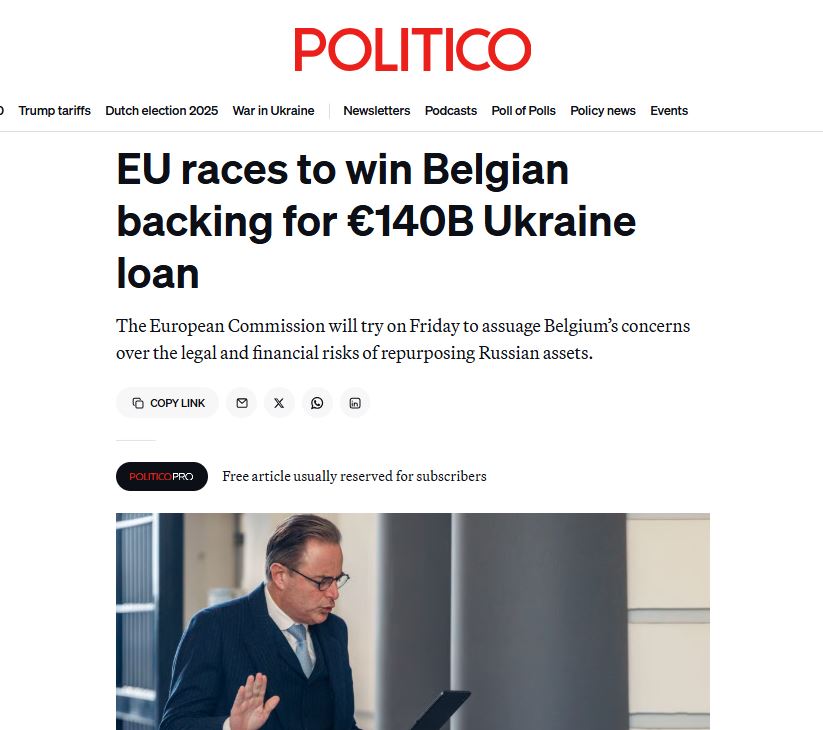 Поэтому Еврокомиссия пытается активизировать переговоры с Бельгией, хотя правительство этой страны и продолжает блокировать решение о «репарационном кредите» для Украины за счёт российских финансов, сообщает европейская версия американского издания Politico.