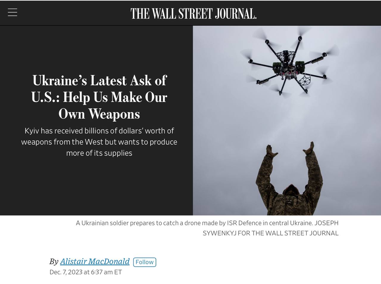 Американское издание The Wall Street Journal опубликовало статью о том, что Киев пытается добиться от союзников согласия на производство военной техники на украинской территории.