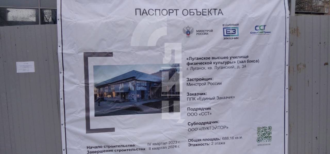 Недавно его обнесли строительным забором и обнародовали паспорт объекта – к середине года там появится новый зал бокса Луганского высшего училища физической культуры.