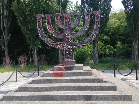В Киеве совершён очередной акт вандализма. Неизвестные вандалы облили красной краской памятник «Менора» в Бабьем Яру. Этот памятник посвящён памяти убитых мирных еврейских граждан в Бабьем Яру в годы Великой Отечественной войны, установлен 29 сентября 1991 года - в 50-летнюю годовщину первого массового расстрела евреев.