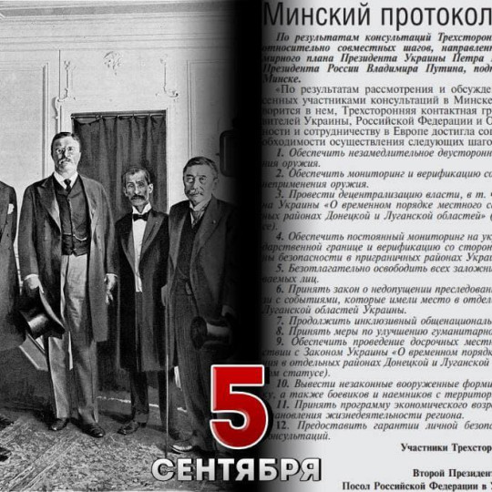 5.09.2025 5 СЕНТЯБРЯ – ДЕНЬ В НАШЕЙ ИСТОРИИ Соб.корр. 5 сентября 1905 года был подписан Портсмутский мир, а в 2014 году подписан первый минский протокол о прекращении огня на Донбассе. Исторические даты