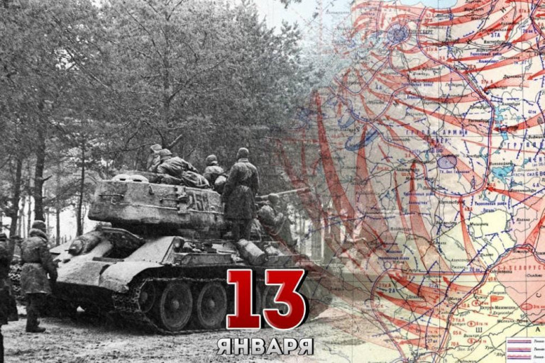 13 января 1945 года началась Восточно-Прусская стратегическая наступательная операция Красной Армии (13 января – 25 апреля). Операция проводилась силами 2-го (К.К. Рокоссовский) и 3-го (И.Д.Черняховский) Белорусского фронтов, частью сил 1-го Прибалтийского (И.X. Баграмян) фронта при содействии кораблей Балтийского флота (В.Ф. Трибуц). В ходе ожесточённых боёв 37 дивизий противника были разбиты, войска Красной Армии заняли Восточную Пруссию и освободили северную часть Польши.