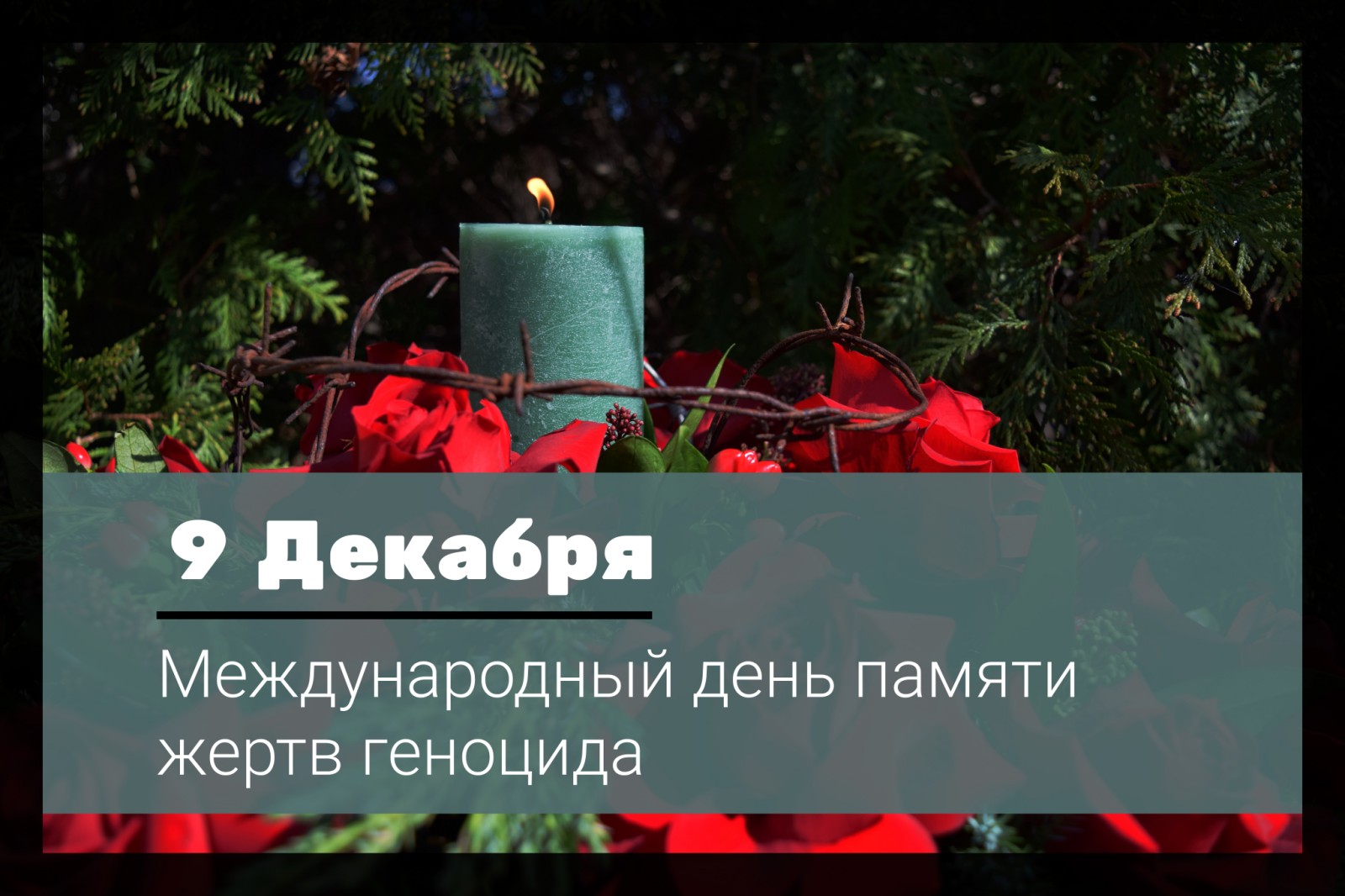 9 декабря – Международный день памяти жертв преступления геноцида, чествования их достоинства и предупреждения этого преступления. Отмечается ежегодно с 2015 года.