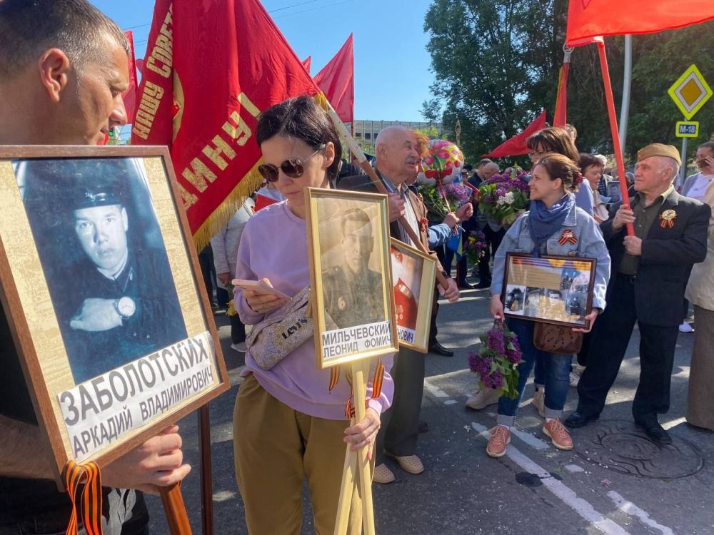 Участники «Бессмертного полка» в Бердянске развернули 77-метровый российский флаг