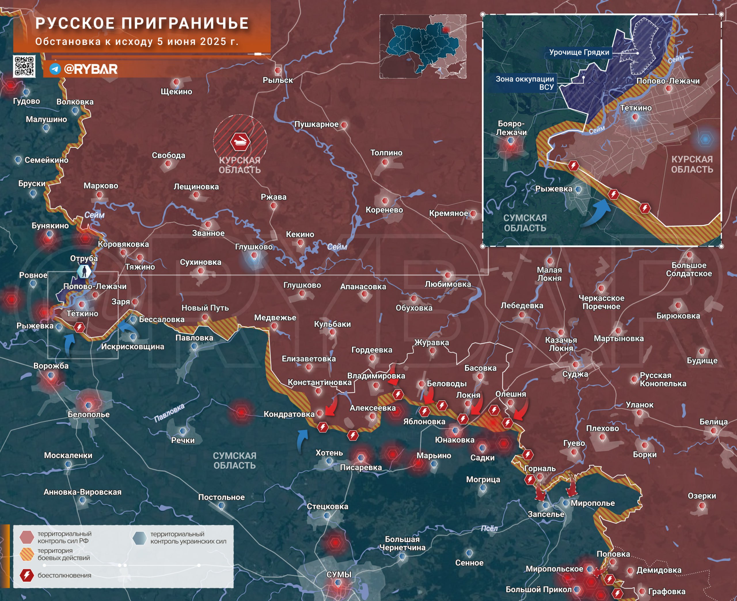 Подразделения Вооружённых сил России продолжают наступление на Сумском направлении. Цель остаётся прежней: формирование буферной зоны в приграничных районах.