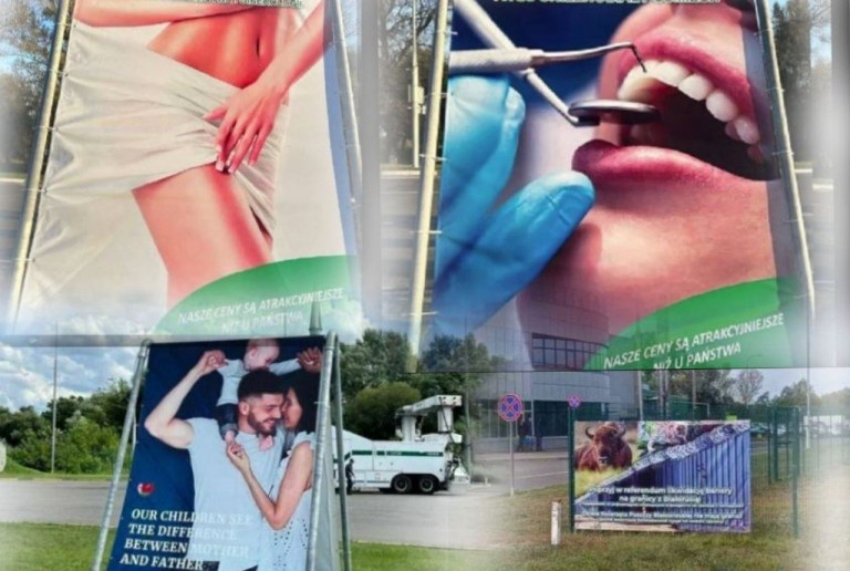 В частности, в октябре были замечены плакаты, на которых рекламируются стоматологические и гинекологические услуги с весьма недвусмысленными подписями: «В белорусских клиниках всегда можно найти ряд услуг в области акушерства и гинекологии», «Белорусские стоматологические кабинеты позаботятся о вашей белоснежной улыбке», «Доверьте свою красоту белорусской косметике и чувствуйте себя уверенно и красиво». При этом главный упор в них делается на то, что «наши цены привлекательнее ваших». Правда, полностью отказаться от политики в Белоруссии все же не смогли, особенно на фоне продолжающихся попыток Варшавы вмешаться во внутреннюю жизнь республики. В этот раз белорусские власти решили дать полякам один совет, разместив вблизи пункта пропуска «Козловичи» билборд с призывом проголосовать на предстоящем в их стране референдуме против установленного недавно забора в Беловежской пуще.