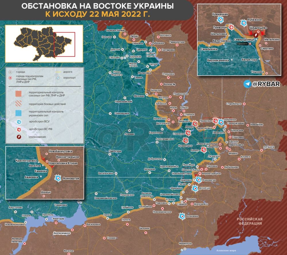 Наступление на Донбасс: обстановка на востоке Украины к исходу 22 мая 2022 года от Телеграм-канала Рыбарь: