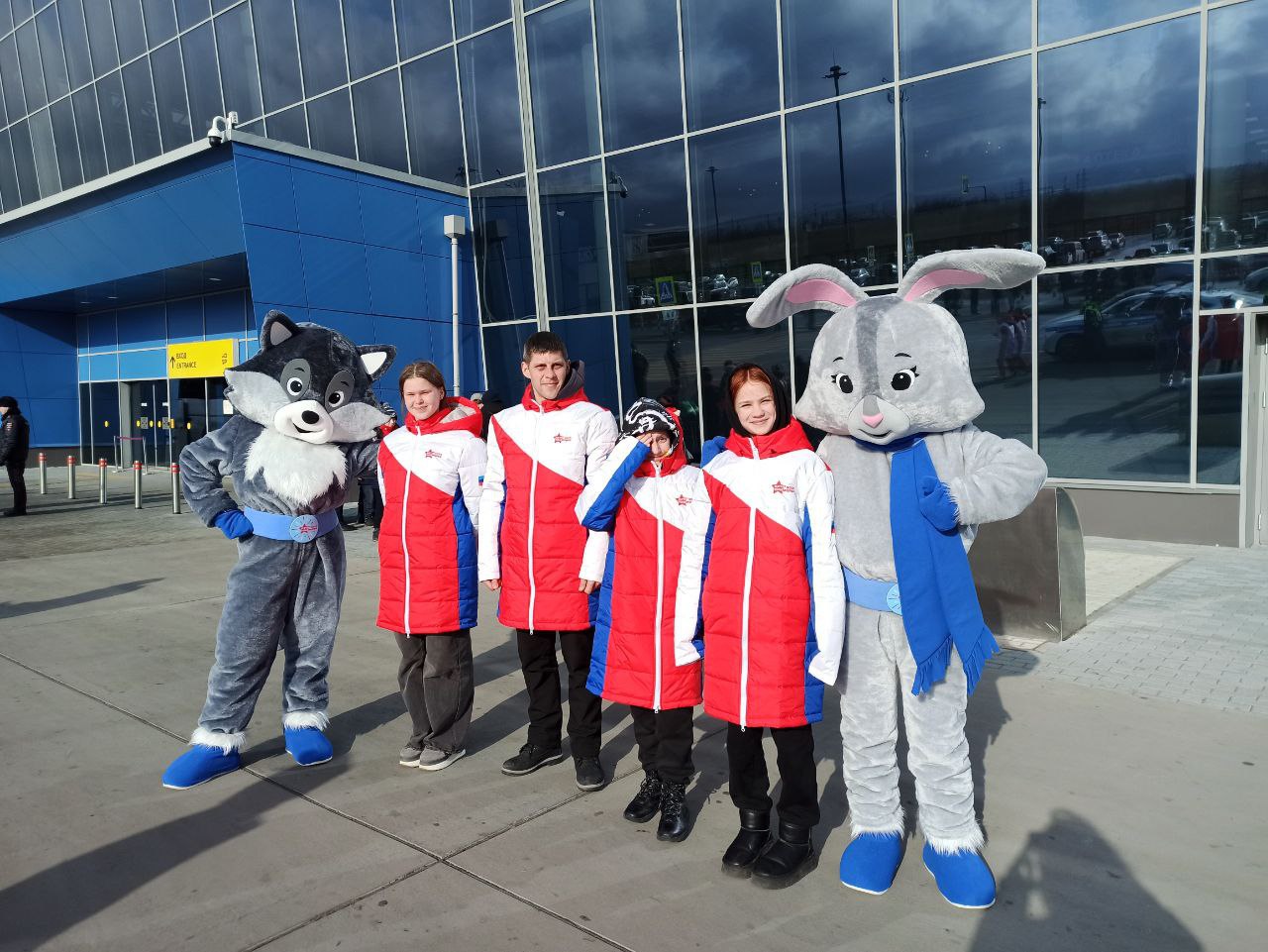 Юных спортсменов встретили волонтёры и талисманы Игр «Дети Приморья» – зайка Уся и волчонок Ханни.