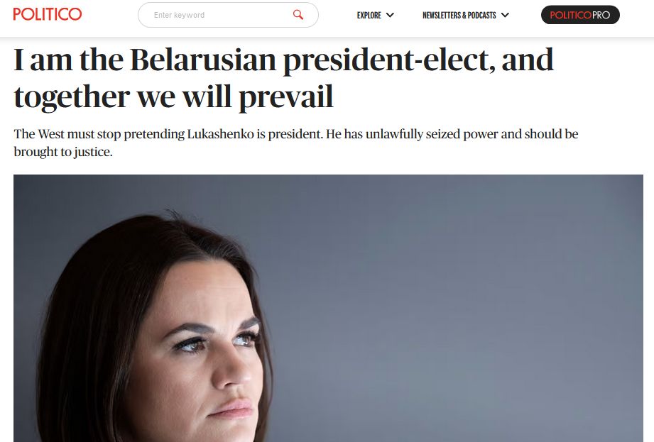 Пока одни делают дело на общей большой Родине, беглые за рубежом забавно надувают щёки. В статье для Politico Светлана Тихановская впервые назвала себя president-elect. Это термин из США. Обозначает, как правило, избранного президента, которому ещё не передал дела действующий. С таким же успехом она может назвать себя наследницей дома Романовых. Но от начальства из Вашингтонского обкома таких указаний пока не поступило.