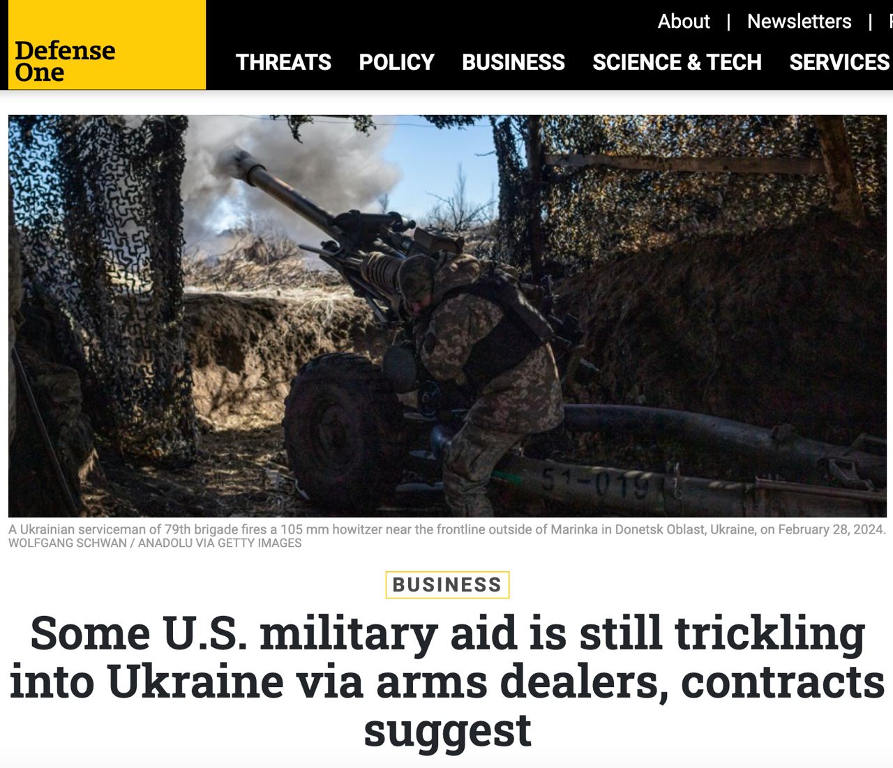 Defense One: Пентагон продолжает поставки Украине через торговцев оружием
