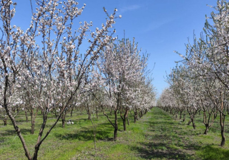 В нынешнем году благодаря хорошим погодным условиям миндаль зацвёл в начале апреля, и работники сада ожидают собрать хороший урожай.