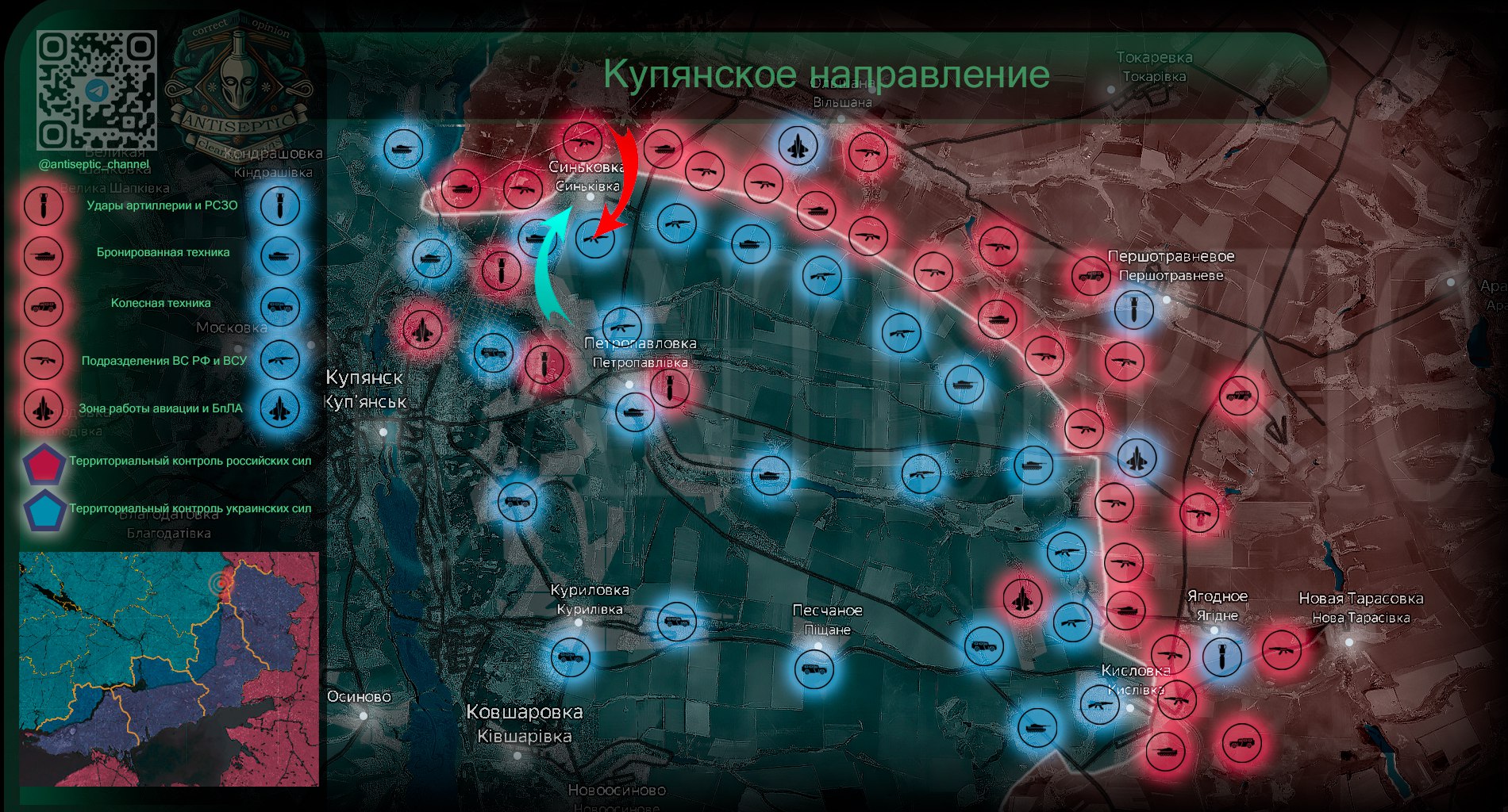Здесь положение тяжёлое. Сообщается, что в районе Синьковки уже ВСУ пошли в атаку на позиции ВС России в направлении Лимана Первого. Наши бойцы отбивают накаты врага и удерживают позиции. Армии России не удаётся достичь значимых результатов на этом направлении уже несколько месяцев, передаёт Телеграм-канал ANTISEPTIC.