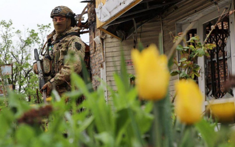 Заглавное фото – Штурмовик ЧВК «Вагнера» в весеннем Артёмовске