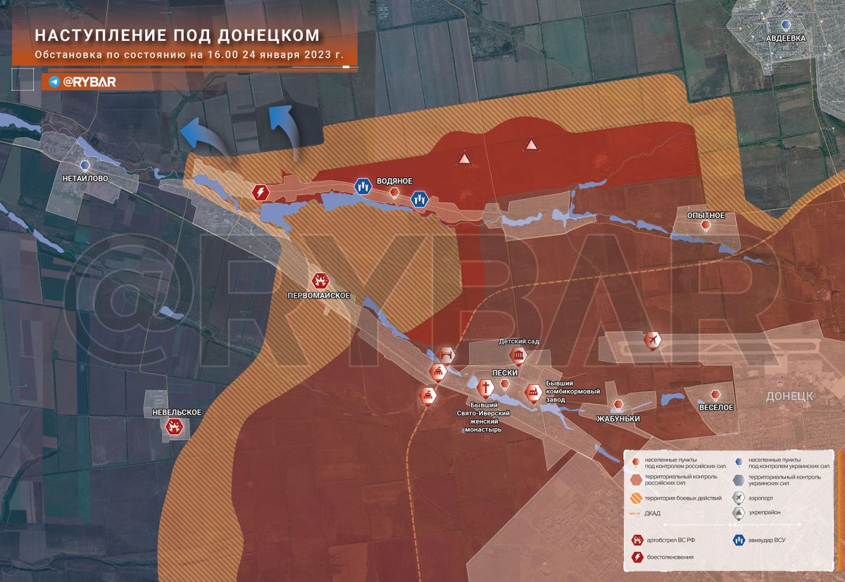 Наступление на Донецком направлении – анализ обстановки по состоянию на 16.00 24 января 2023 года от Телеграм-канала «Рыбарь».