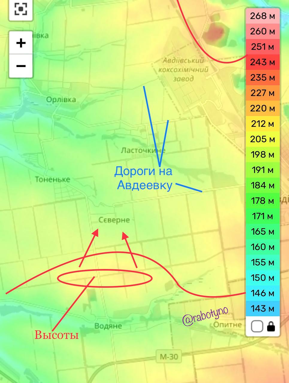 Стоит отметить, что бои здесь ведутся давно: любая фаза наступления на Авдеевку всегда сопровождалась боями к северу от Водяного. Это позволило занять высоты и ряд лесопосадок, однако до окраин Северного на некоторых участках всё ещё остаётся около 1 километра. Вроде бы расстояние совсем небольшое, однако пройти его придётся почти по открытому полю (есть всего один небольшой лесной участок вдоль дороги в населённый пункт). А это уже довольно тяжёлая операция. Тем не менее, если удастся войти в село – дальше будет легче.