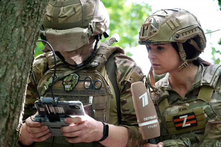 Заглавное фото – Военный корреспондент Первого Канала Анна Прокофьева и оператор БПЛА из ОБТФ «Каскад».