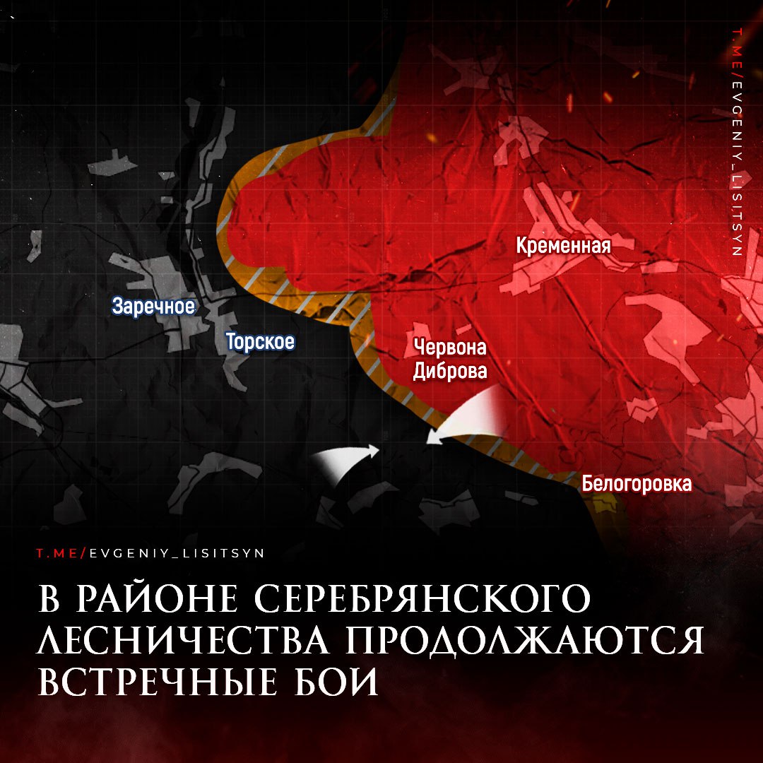 На СЕВЕРСКОМ направлении за прошедшие сутки были встречные бои в Серебрянском лесном массиве. Противник в результате успешных действий российских войск потерял контроль над так называемой Макеевской балкой и лесопосадками к северу от автомобильной дороги, пишет военкор Евгений Лисицын.