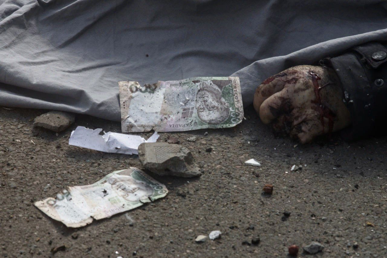 Стал подбираться всё ближе. Вглядывался в детали. Вот – вымокший в крови головной убор, вот – ошмётки сайдинга, а вот – банкноты. Не похожи на те, к которым привык. Не сразу понял, что это были украинские гривны. Купюры номиналом в 500 гривен были разбросаны перед входом в отделение ЦРБ. Похоже, старики хотели обменять их на рубли. Возможно, это была их пенсия, которую когда-то им приходилось ездить получать на некогда подконтрольную Украине территорию Донбасса. Люди были вынуждены выстаивать в очередях долгие часы, прежде чем им позволят пересечь линию разграничения. Некоторые не выдерживали таких испытание и умирали прямо в очередях на КПП. Киев создал достаточно преград, чтобы старики Донбасса не ехали за своими деньгами. В итоге киевские войска расстреляли этих людей за то, что терпят крах на всех фронтах.