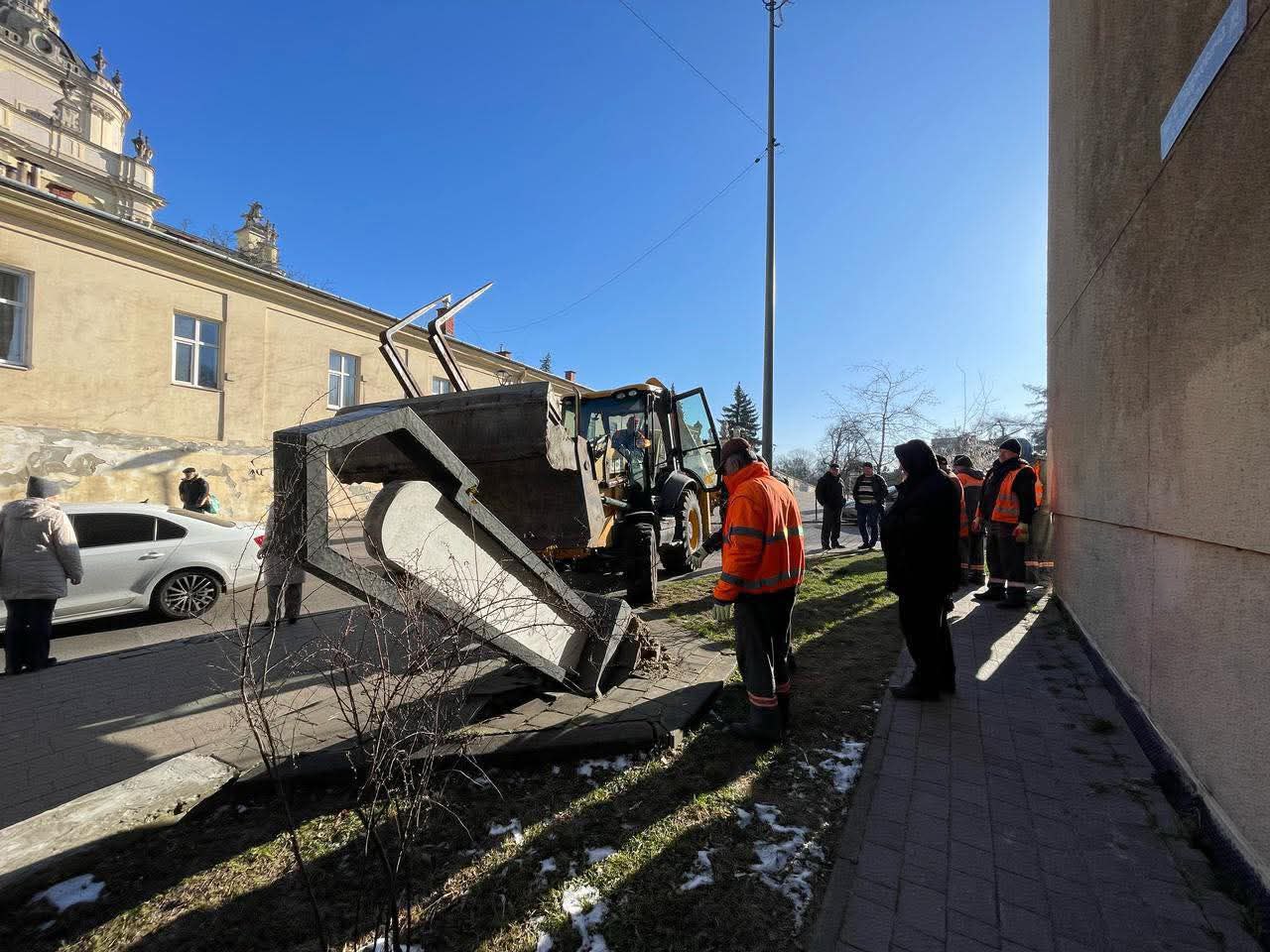 Фотографии сноса памятника бульдозером