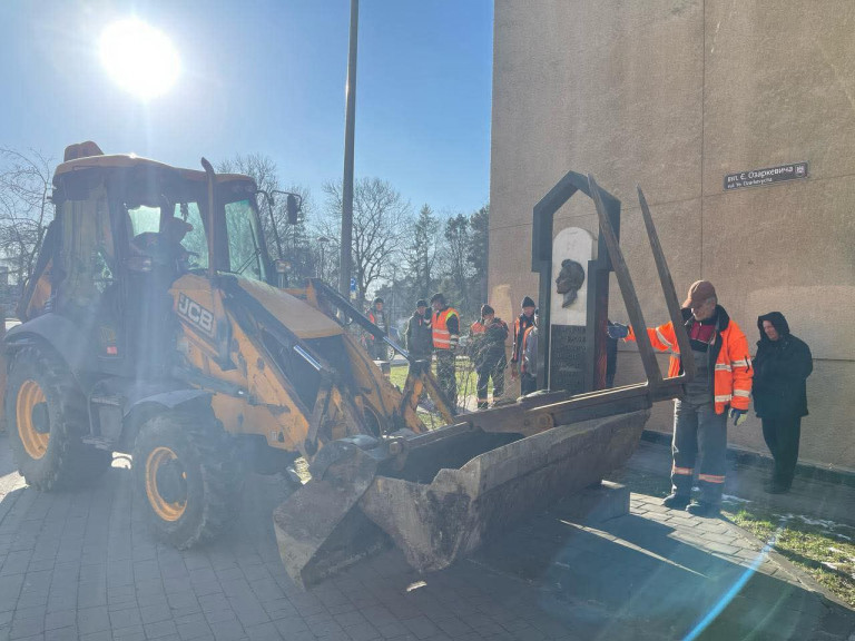 Экскаватор против искусства: во Львове снесли памятник известному режиссёру и актёру Амвросию Бучме