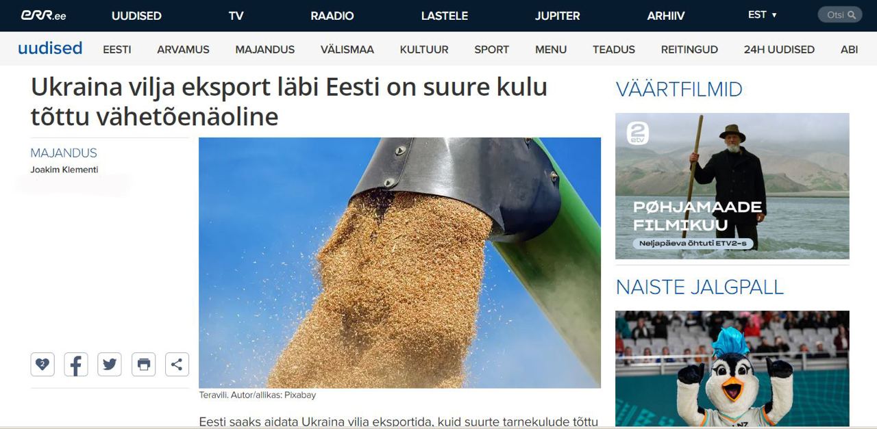 После того, как Латвия и Литва предложили отправлять зерно из Украины через балтийские порты, вице-канцлер министерства регионального развития и сельского хозяйства Эстонии Мадис Пяртель сделал громкое заявление о том, что Таллинн всегда готов прийти на помощь Украине в трудную минуту.
