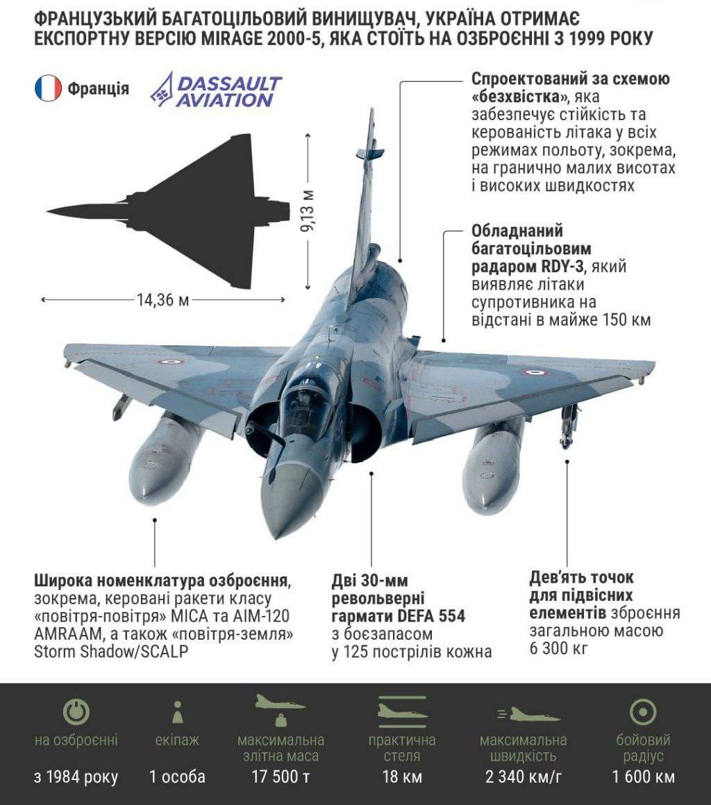 При этом точное количество самолётов, которые получат ВСУ, не называлось тогда, неизвестно оно и теперь. По мнению военных экспертов, речь идёт о первой небольшой партии – от шести до 12 истребителей версии Mirage 2000-5F.