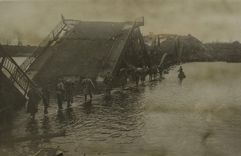Заглавное фото: В освобождённом Гомеле. Бойцы по штурмовому мостику направляются в город. Ноябрь 1943 г. Фото Е.Д.Копыта