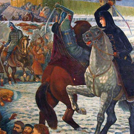 Заглавная иллюстрация. Фототипия с картины П.О.Ковалевского «Битва при Мечке»