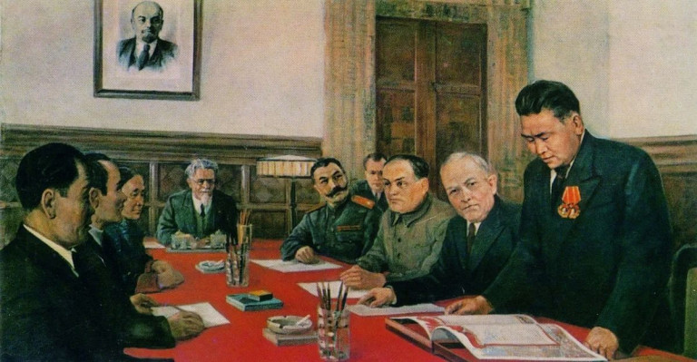 Заглавная иллюстрация: «Заседание Президиума Верховного Совета СССР в связи с вхождением Тувы в состав Советского Союза» (В.Ф. Дёмин)