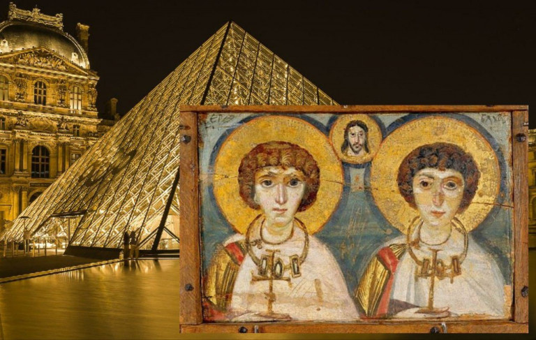 Месяц назад в Лувре открылась выставка византийских икон «Истоки священного образа». Экспонаты для выставки были вывезены из киевского Национального музея искусств имени Богдана и Варвары Ханенко. Всего из Киева вывезли 16 древних икон, 11 из них тут же отправили на реставрацию, а посетители выставки увидят иконы «Мученик и мученица», «Иоанн Предтеча», «Богоматерь с младенцем» и «Святые Сергий и Вакх». Все они датируются VI-VII веком, выполнены иконы воском по дереву и считаются самыми древними из сохранившихся христианских икон в мире. Пятый экспонат на выставке – мозаичное панно XIII века с изображением Святого Николая.