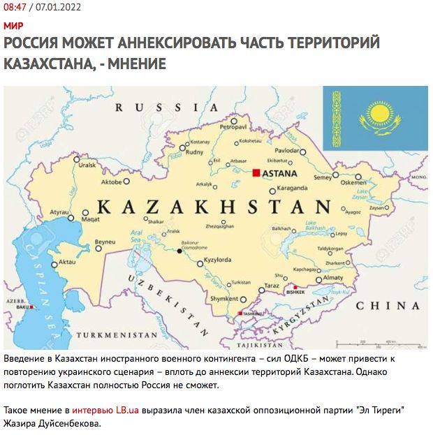 В Киеве забывают, что ОДКБ – это не только Россия. Называя миротворцев ОДКБ интервентами, Украина настраивает против себя Белоруссию, Армению, Таджикистан, Киргизию. Ведь это и против их военнослужащих, прибывших на помощь Казахстану, действует украинская пропаганда.