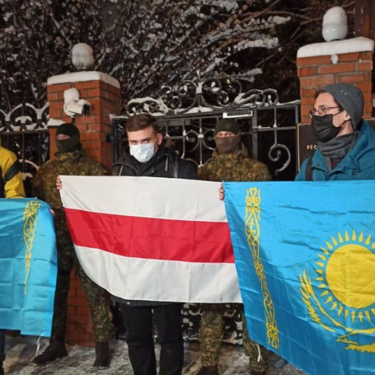 На заглавном фото. На Михайловской площади Киева поддержали казахстанских экстремистов