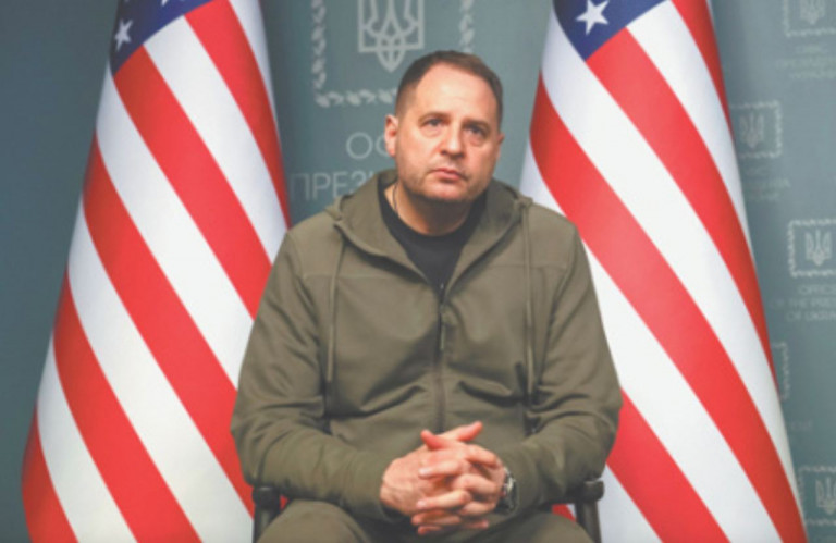 Руководитель администрации президента Зеленского Андрей Ермак требует от Вашингтона поддерживать Украину, аргументируя это требование тем, что она-де «противостоит оси зла Россия – Иран – Северная Корея».