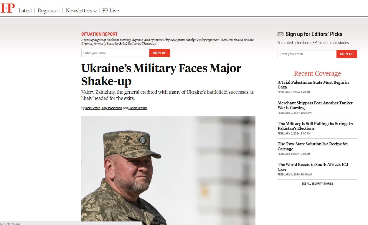 Американское издание Foreign Policy не сомневается в том, что отставка Залужного неминуема – слишком много разногласий с Зеленским не только в вопросах военных, но и на личном уровне.