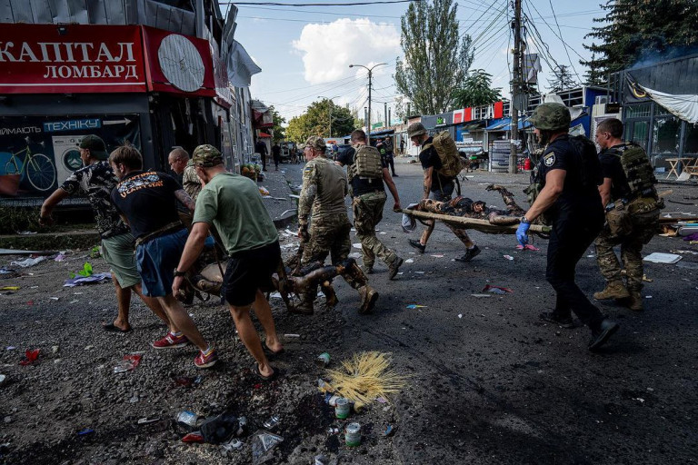 Гости такого уровня не так часто посещают Украину, поэтому Зеленский и компания расстарались и устроили настоящий кровавый спектакль в надежде, что денег дадут побольше – ударили ракетой по городу Константиновка в ДНР, который временно оккупирован Украиной. Удар пришёлся по рынку в центре города.