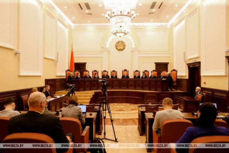 15 декабря 2021 года в Минске прошло заседание Конституционного суда по делу «О соответствии общепризнанным принципам и нормам международного права документов, принятых (изданных) Европейским союзом и некоторыми иностранными государствами, и их органами, предусматривающих введение ограничительных мер в отношении Республики Беларусь».