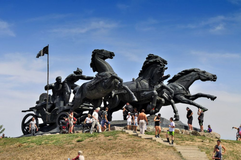 Заглавная иллюстрация. Монумент «Легендарная тачанка», воздвигнутый в честь победы красных на Каховском плацдарме
