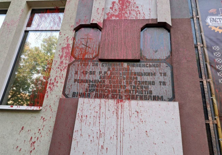«В Ровно мужчина облил красной краской доску памяти украинским патриотам, которые в 40-50 годы были заключены в тюрьму и замучены большевистским и нацистским режимами. А потом убежал с «места преступления» и сейчас полиция ищет хулигана», сообщают с негодованием украинские СМИ. Речь о доске, размещённой на здании, что на улице Соборной.
