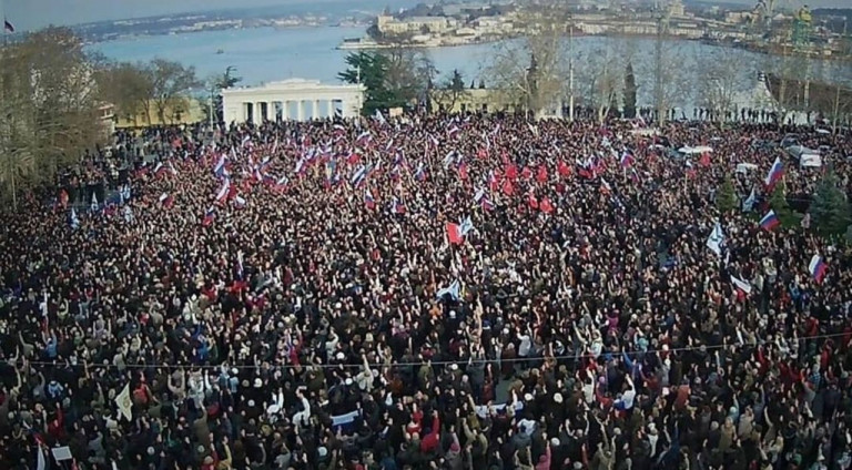 На заглавном фото: Крымская весна, митинг в Севастополе 23 февраля 2014 года, источник – INFOSEVAS